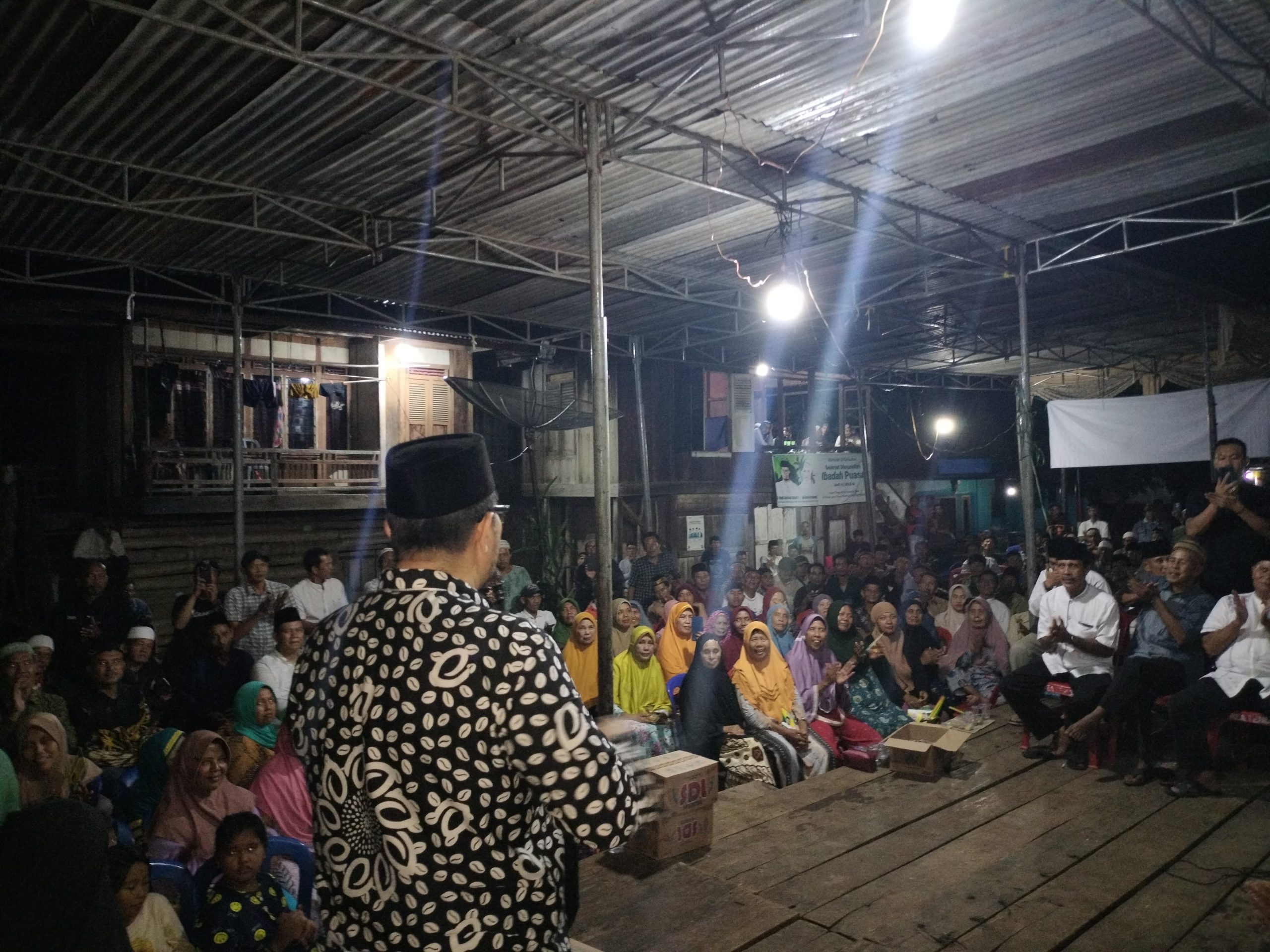 Kehadiran H. Budi Antoni Aljufri disambut meriah oleh warga yang sudah memadati lokasi sejak sore hari.